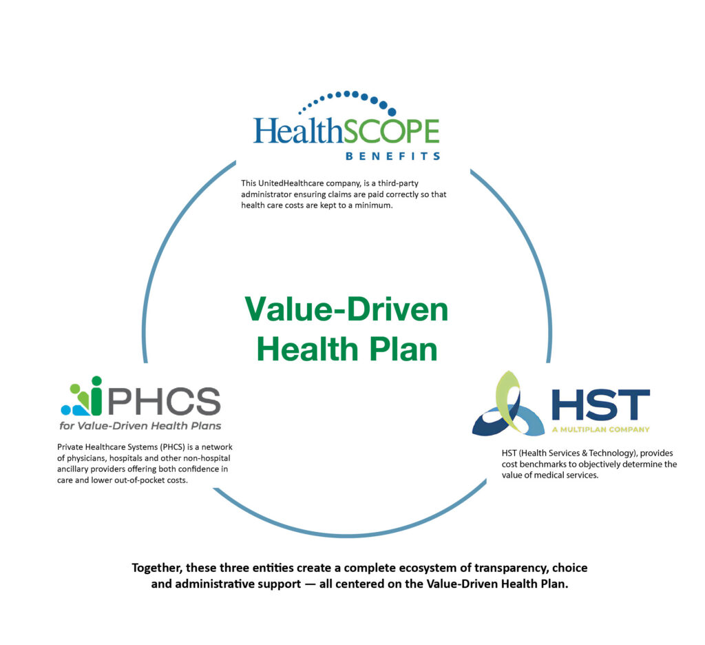 The Value-Driven Health Plan works by bringing together three key components. Each plays a unique role in delivering transparent, flexible, and supportive health care services.